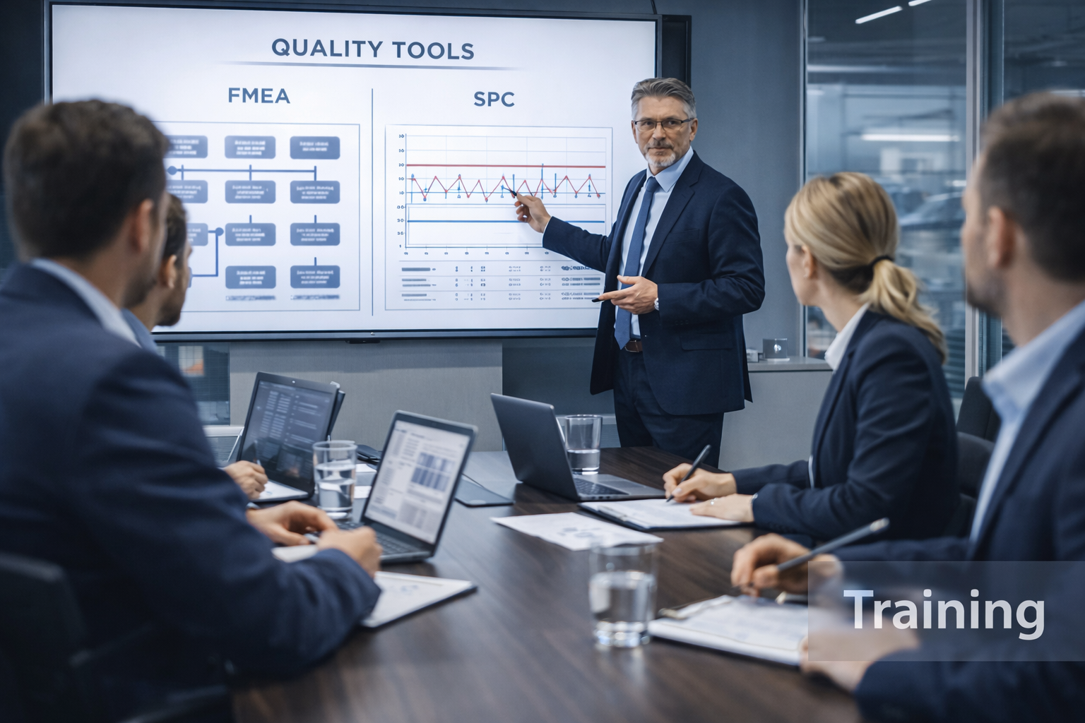 Gyakorlatorientált képzések: FMEA, SPC, MSA, 8D, IATF. Nem elmélet, hanem azonnal alkalmazható tudás, valós példákon keresztül.